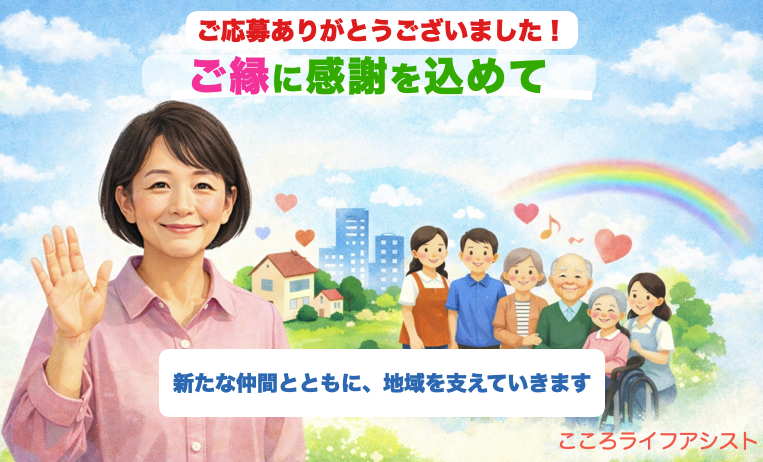 このたびは、株式会社アシストの公式ホームページ内にて掲載した 「居宅介護支援事業所立ち上げに伴うケアマネジャー募集」のページをご覧いただき、 また関心をお寄せいただき、本当にありがとうございました。 おかげさまで、求人を