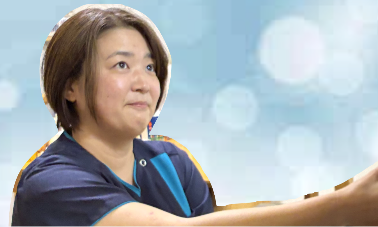前職から訪問マッサージに勤めており、マッサージやストレッチはもちろん、ご利用者様のお体の状態に合わせて生活動作の機能回復のための機能訓練を考え、ご提案してまいりました。ご利用者様が少しでも元気に動けるようになり、ご本人様、ご家族様が安心して笑顔になっていただけるよう誠心誠意サポートしてまいります。